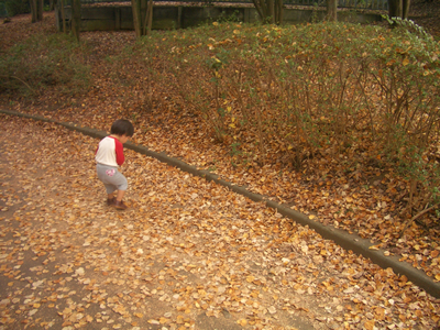 夕方になり3人でお散歩。せっかくなので今日も初めて行く公園。ここの遊具は@にはまだ早い感じ。遊具よりも落ち葉の絨毯を歩いて御満悦。